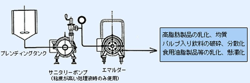 製品の特長 高脂肪製品に最適 ハイサニタリー構造 多用途対応可能 軽量・コンパクト ホモゲナイザーの前処理 資料ダウンロード 製品のお問い合わせ 優れた分散作用により、特に高脂肪製品に対した安定した乳化特性を示します。用途 食用油脂 ドレッシング ソース 加工乳 乳酸菌飲料 等 使用例エマルダーをホモゲナイザー(ホモジナイザー)と組み合わせて使用エマルダー単体にて使用