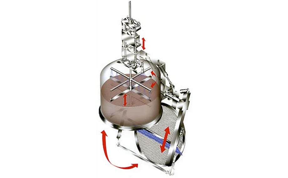 高トルクモーター、スイングシリンダーの組み合わせによるロック装置で、高温・高圧抽出に対応できます。