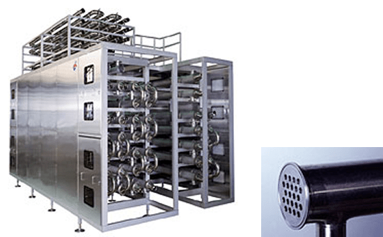 マルチパスタイプで固形物入り及び高粘度製品の処理に適した熱交換器です。